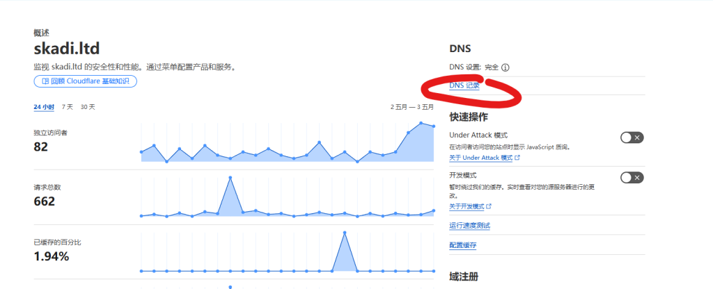 进入自己的cloudflare域名控制面板