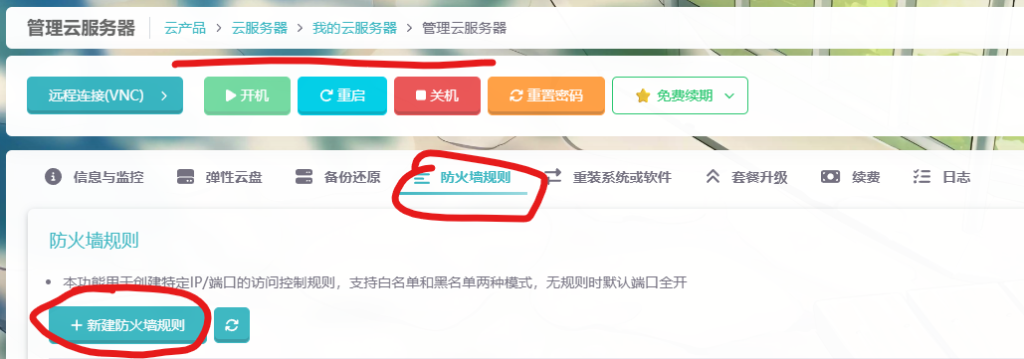这里需要注意的是需要去服务器控制面板放行对应的端口,就是黄字上写的端口