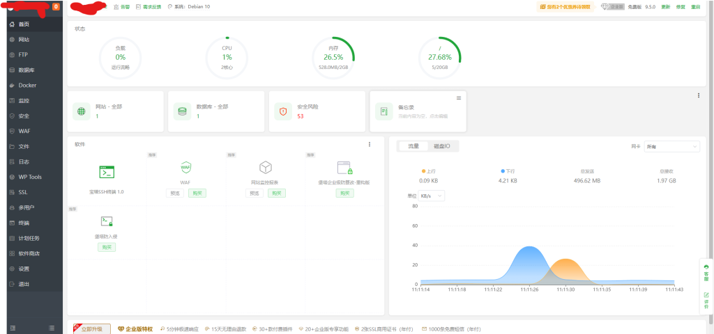 跟着向导登录宝塔之后会进入这个页面