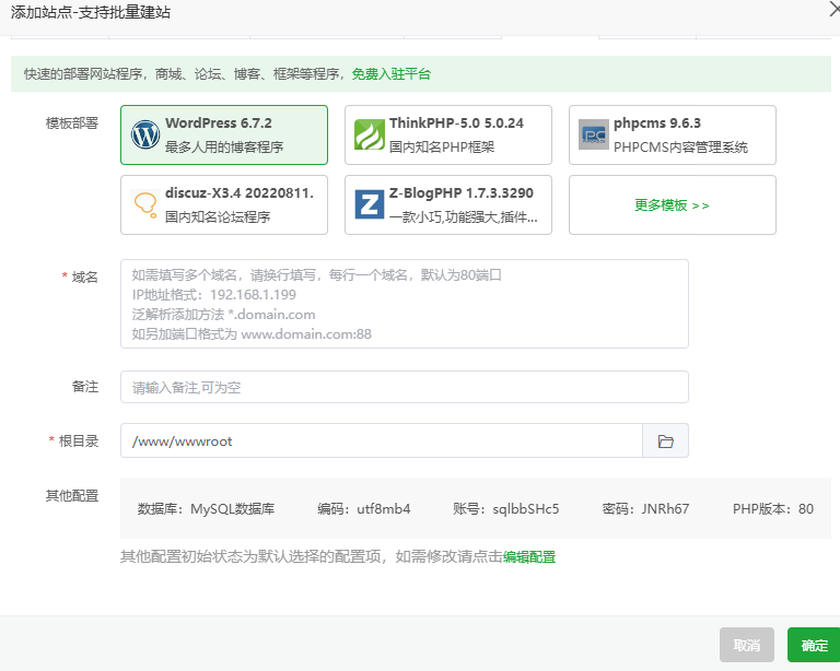这时候回到宝塔的页面,显示博客网站的账户密码等信息,截图保存。