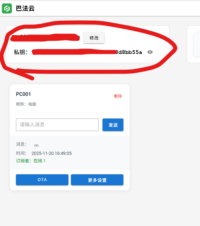 Client ID:巴法云私钥