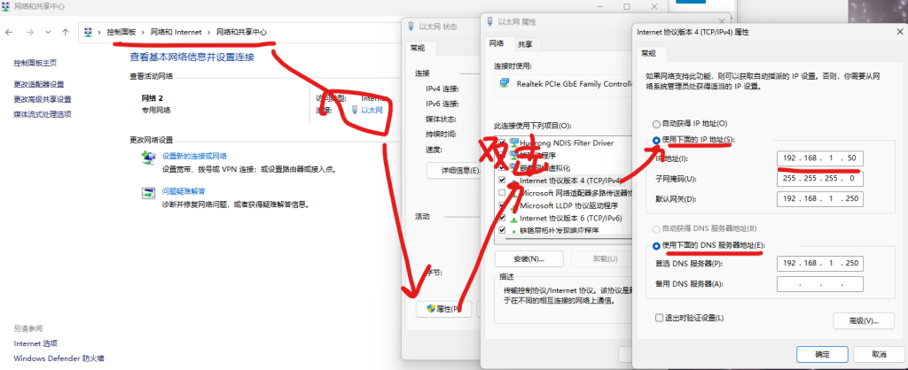 1、把电脑设置为静态IP,我这里设置成192.168.1.50